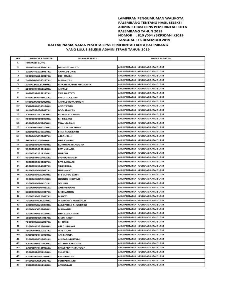 Lampiran Pengumuman Administrasi Pdf